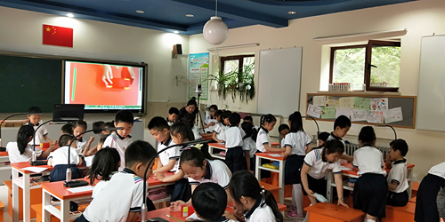 于會(huì)前,與會(huì)領(lǐng)導(dǎo)及專家觀摩了學(xué)校智慧課堂應(yīng)用示范課。示范課上,教師借助吉星智慧課堂互動(dòng)、書法繪畫、答題互動(dòng)等系統(tǒng)進(jìn)行教學(xué),呈現(xiàn)了以學(xué)生為主體的個(gè)性化智慧趣課堂。