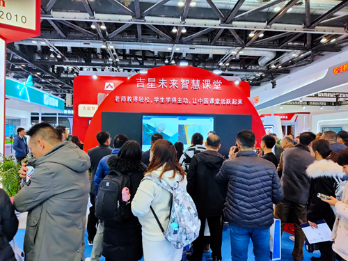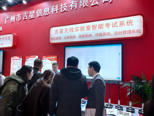 其中,吉星的全互動智慧課堂與實驗室智能考試系統備受大家歡迎,展區人潮涌動,眾多學校、經銷商現場申報試用。