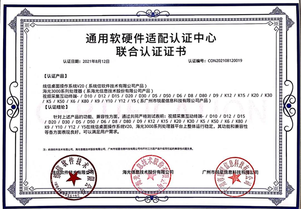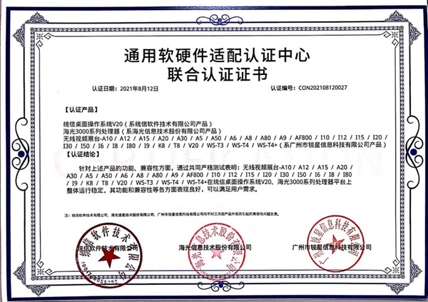 日前,由吉星子公司銳星信息科技自主研發的無線展臺系列產品與統信UOS桌面操作系統V20完成產品兼容性測試以及產品功能性測試。