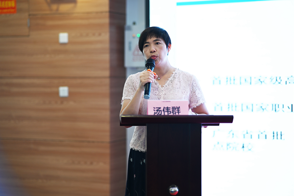 學(xué)校分享環(huán)節(jié),廣州市工貿(mào)技師學(xué)院黨委書記湯偉群帶來(lái)了主題為以雙元抓手促進(jìn)產(chǎn)教融合的分享。