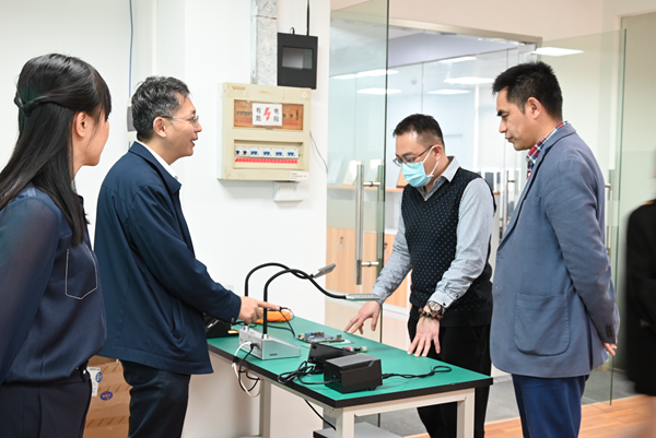 近日,廣東省教學空間規劃研究院迎來了廣州科技貿易職業學院黨委書記彭華國、教務處處長王永祥、智能制造學院院長葉萍、交通工程學院院長張紅偉、現代教育技術中心方楚鑫等一行領導的參觀指導。