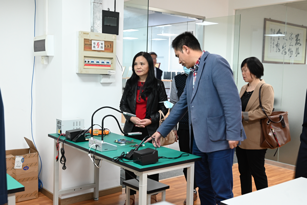 通過廣東省教學空間規劃研究院理事長舒華俊對產品的介紹,廣州科技貿易職業學院的領導了解了產品的基本情況,同時,深度體驗了不同產品在書法、美術、實驗、護理、烹飪等場景中的實際運用。