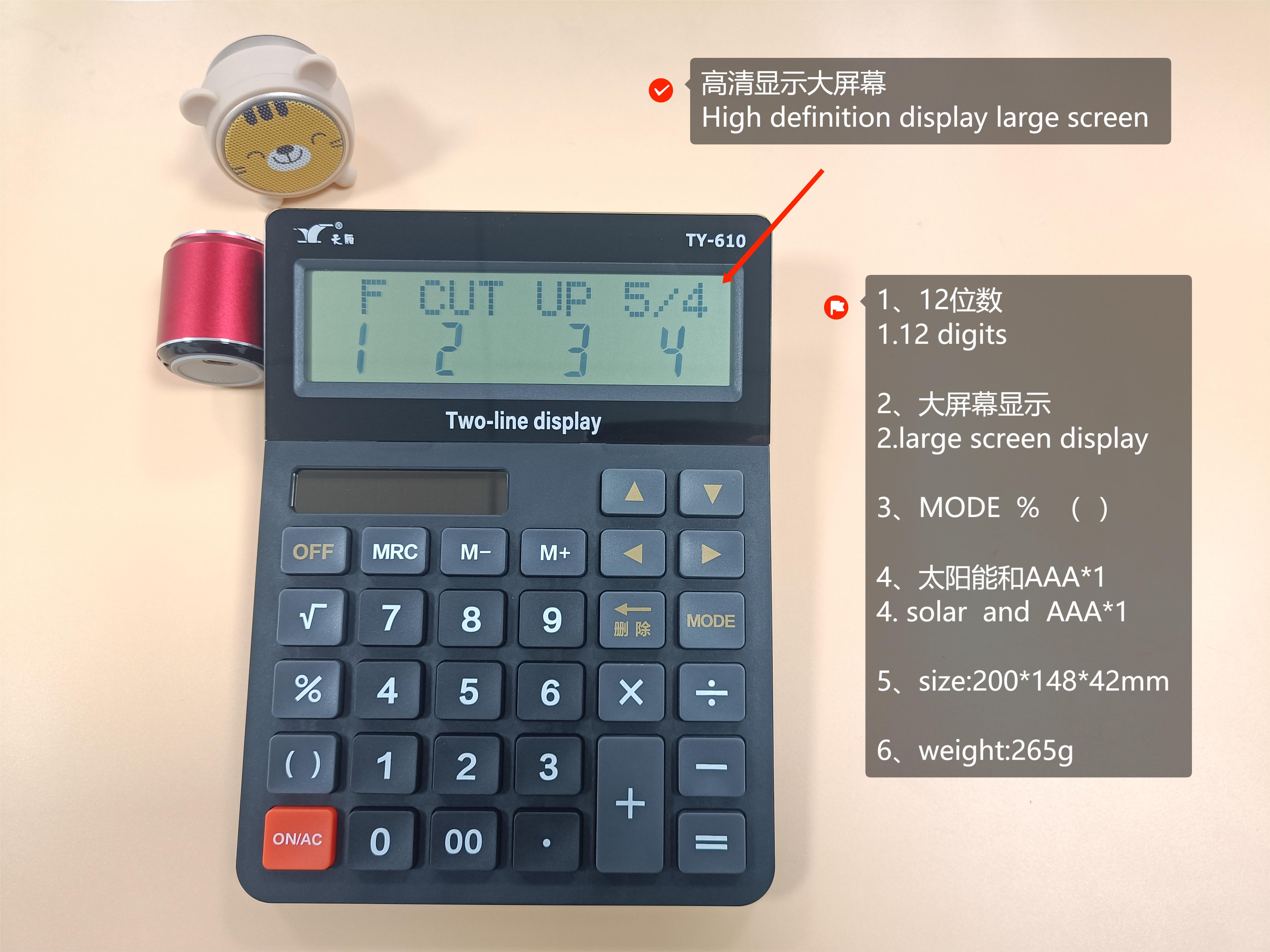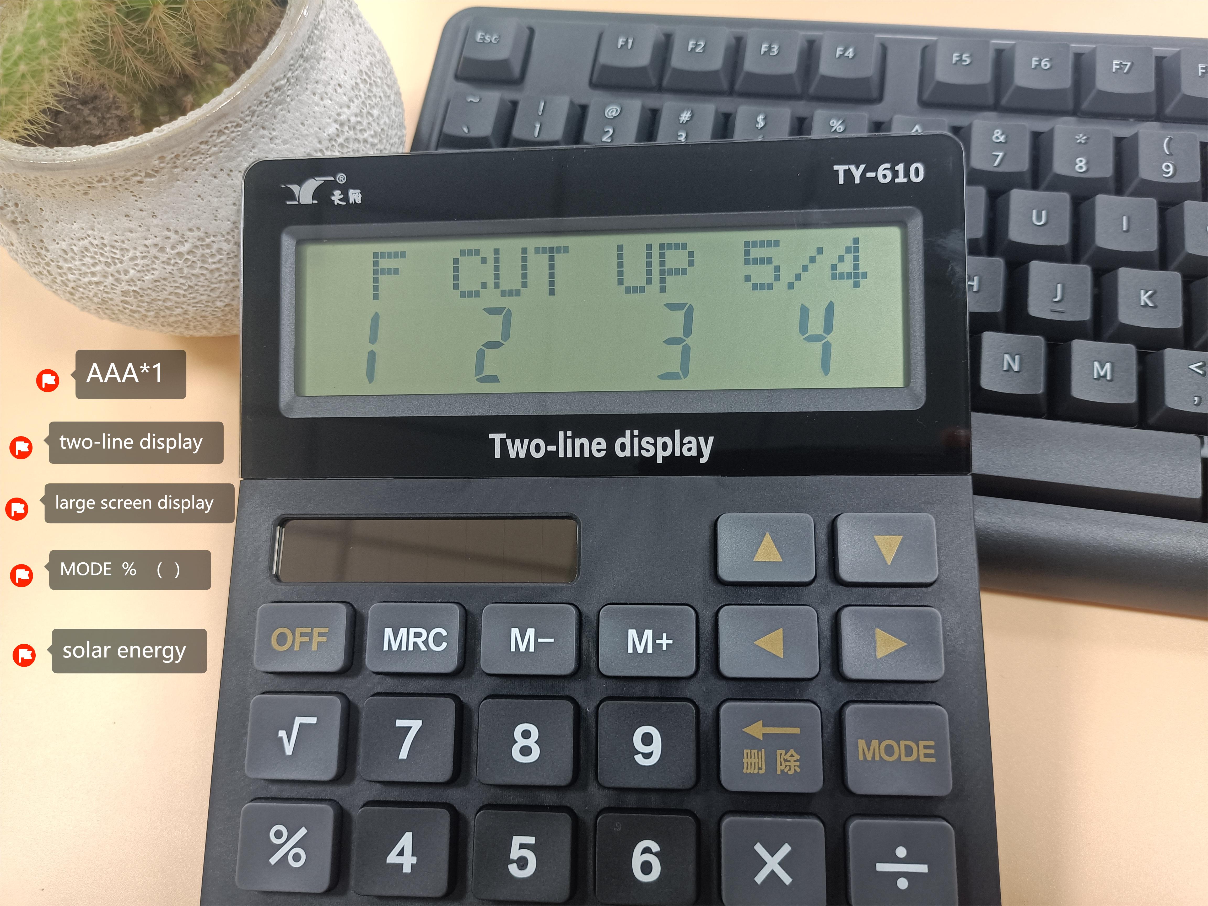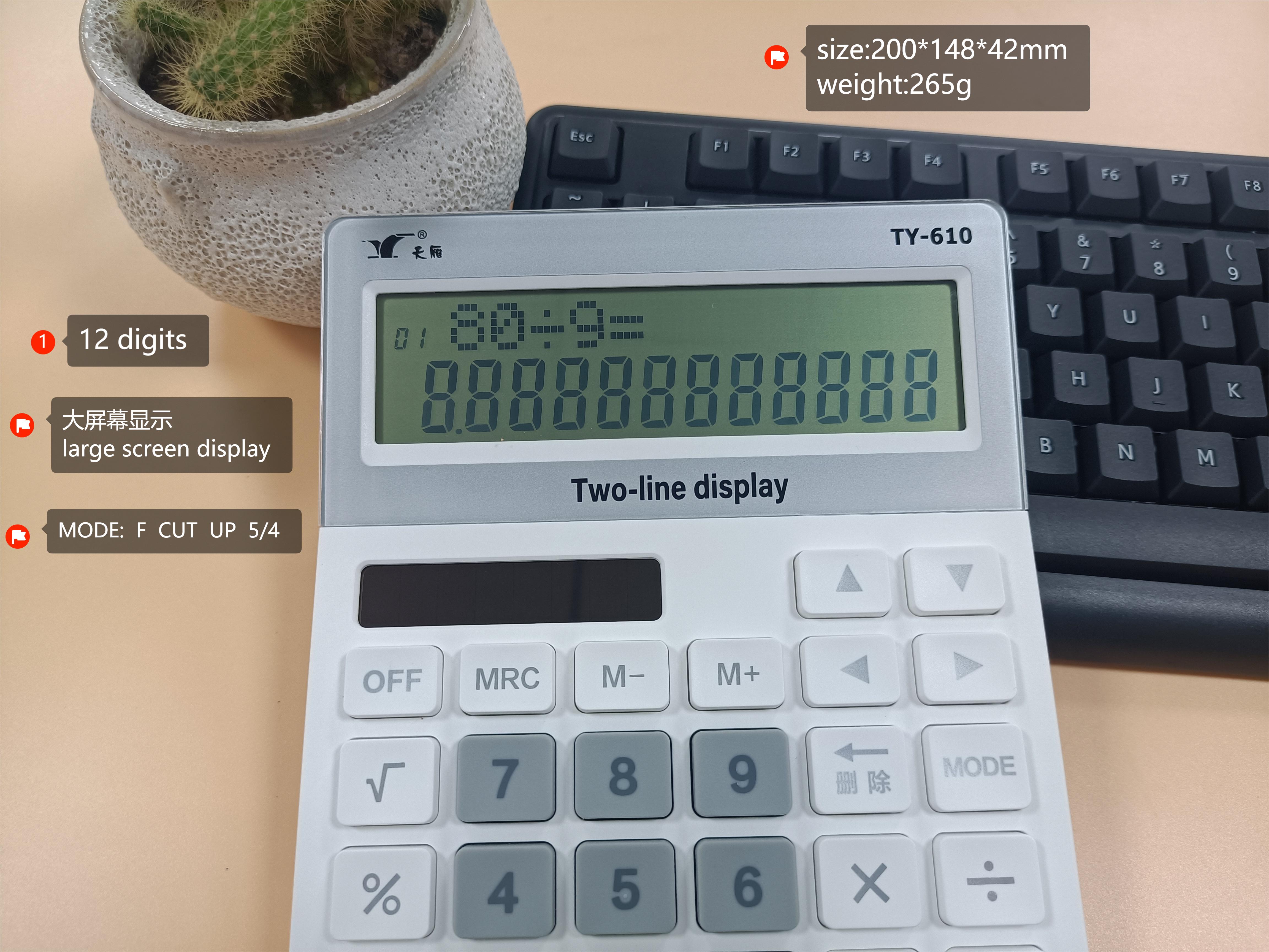 TY-610雙行雙電源12位數大屏顯示計算器
