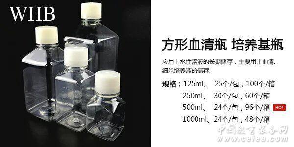產品詳細介紹 WHB血清瓶由高品質PETE材質,精密模具及自動化設備生產制造,具有極佳的透明性和耐用性。 本產品應用于水性溶液的長期儲存,主要用于血清、細胞培養液的儲存。 ◐ 白色尼龍蓋子,高強度、瓶身帶精確刻度。 ◐ 常用的規格:125ml、250ml500ml1000ml可選擇。 ◐ 可耐低溫-135℃,冷凍儲存。 ◐ 瓶身為方形,方便拿握,方便儲存。 ◐ 經伽馬射線消毒滅菌,無DNA酶、無RNA酶、無熱源。 細節圖片: 血清瓶,培養基方瓶 血清瓶,培養基方瓶