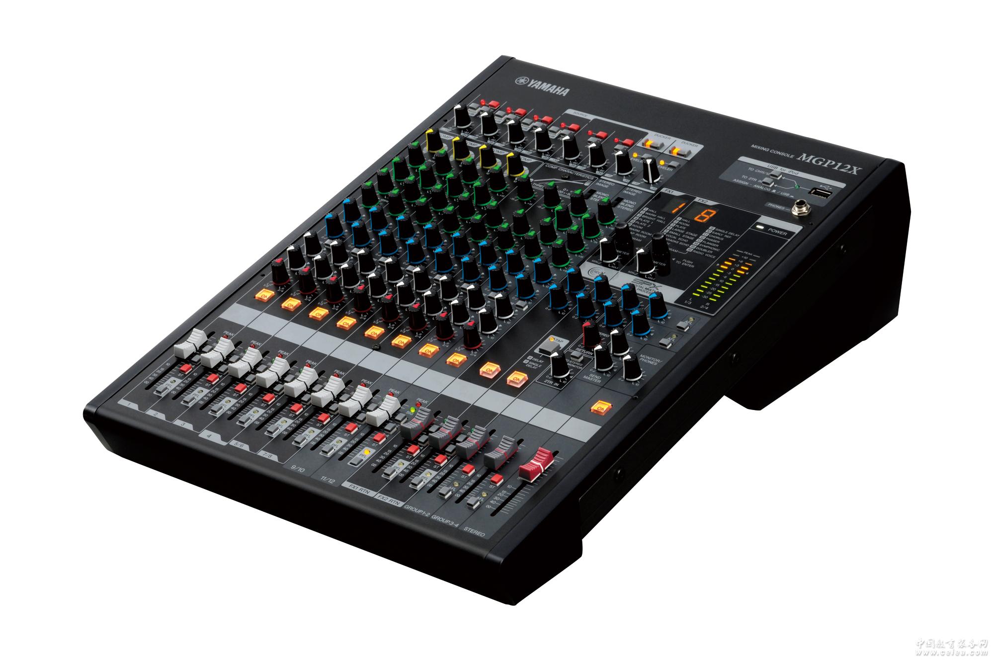 產品詳細介紹6路話筒輸入,帶有 48V幻象供電,每通道帶有HPF 12個線路輸入 (4個單聲道和 4個立體聲) 附加的2TR輸入口,用于從模擬設備或iPod/iPhone接收輸出信號 2個AUX發送 + 2個FX發送 4 GROUP母線 + ST母線 錄音棚級分布式A類 “D-PRE”話放,內部配置復合晶體管倒相電路 極具音樂韻味的 X-pressive EQ功能源于Yamaha久負盛名的VCM技術 專業單旋鈕壓縮器,帶有LED指示燈 高級雙重數字效果處理器:高級REV-X和Classic SPX Stereo Hybrid Channels (立體聲混合型通道)可以應用強大的專用DSP iPod/iPhone的數字式連接,用于音頻播放與DSP控制 MGP Editor可以通過iPod/iPhone詳細控制和操作DSP設置 耐久、緊湊而堅固的粉末噴涂金屬外殼 一體式機柜托架,便于機柜安裝 內部全局供電,在世界各地都可以立即使用 概述 MGP12X 混合能力 混合渠道 12線路輸入(4單聲道,4立體聲) 集團 4組總線+ ST總線 AUX AUX發送2 + 2 FX發送 輸入通道功能 壓縮機CH1-4,HPF(100Hz的12DB/OCT)EQ(單聲道),CH±15分貝(最大):高的8kHz的貨架/中250Hz的5kHz的峰值(CH1-4 ,9-12)/低125Hz的擱置,CH EQ (立體聲)±15分貝(最大):高8kHz的貨架/中值為2.5kHz峰值(CH5~8)/低125Hz的擱置 板載處理器 FX1:REV-X(8個程序,參數控制),FX2:SPX(16程序,參數控制) I / O 麥克風輸入 MIC:(100Hz的12DB/OCT的) 幻象電源 每通道48V幻象電源 線路輸入 LINE:4mono +4立體聲,CH插入:4,返回:1stereo,2TR IN:1路立體聲 數字I / O USB音頻USB的iPod,iPhone獨家 總諧波失真 0.02%(20HZ-20KHZ @ +14 dBu的) 頻率響應 +0.5 /-1.0分貝20HZ -?? 20KHZ,標稱輸出電平@ 1kHz時 哼聲和噪聲水平 等效輸入噪聲 相聲 殘余輸出噪聲 -128 DBU(20HZ-20 kHz時,RS =150Ω,輸入增益=最大) -74分貝@ 1kHz時 -102 DBU(20HZ-20 kHz時,RS =150Ω,輸入增益=最大) 電源要求 100-240V 50HZ/60HZ 耗電量 最大45W 尺寸 W 凈重 ? 348毫米 e 143毫米 7.5公斤 495毫米 |