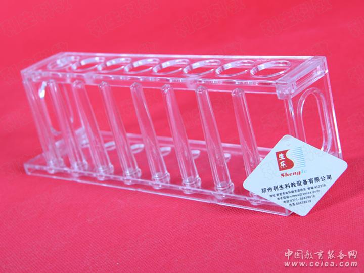 1.產(chǎn)品為8孔型式,由試管孔板、支撐板、試管棒、底座組成,采用透明聚碳酸酯注塑成型;