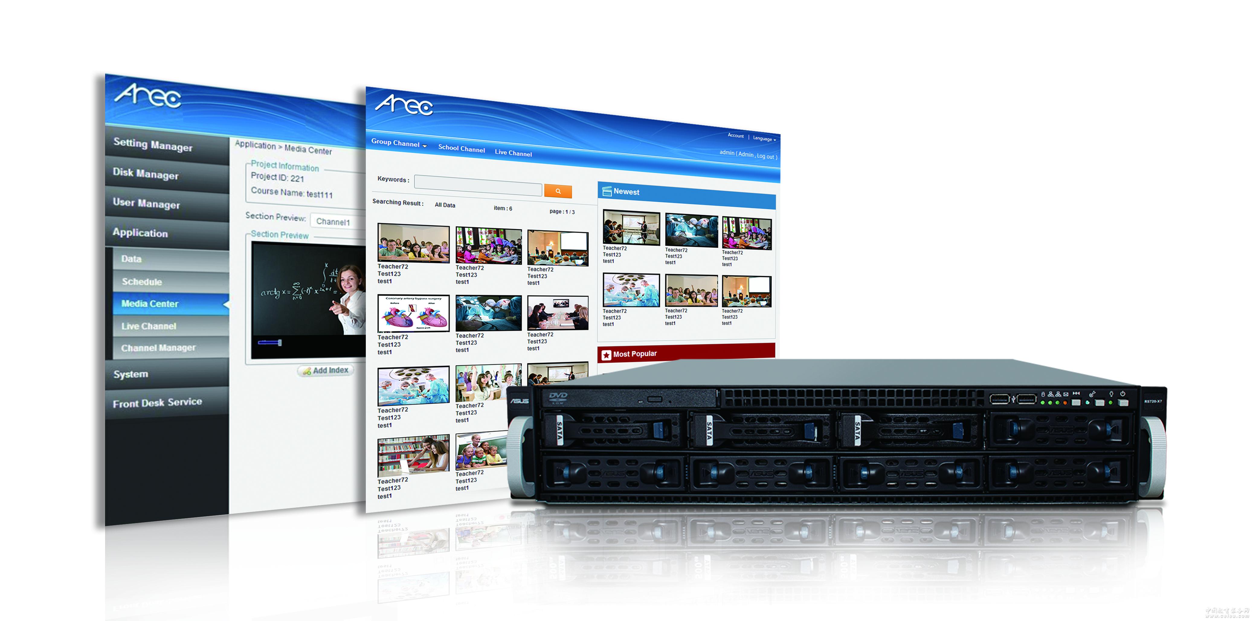 愛(ài)錄客 EM-1300媒體中心擁有強(qiáng)大的系統(tǒng)運(yùn)算能力,搭配獨(dú)家優(yōu)化處理技術(shù),提供用戶播放流暢、系統(tǒng)穩(wěn)定的服務(wù)。搭載「錄播站管理平臺(tái)」及「課程發(fā)布平臺(tái)」模塊,愛(ài)錄客 EM-1300智能錄播媒體中心不僅可迅速管理校園/企業(yè)內(nèi)部的愛(ài)錄客智能錄播一體機(jī),同時(shí)可迅速將各教室錄制的課程直接發(fā)布于網(wǎng)絡(luò)。搭配會(huì)員管理機(jī)制,輕松打造學(xué)校/企業(yè)專屬的影像發(fā)布中心。有了專屬影像發(fā)布中心,終端使用者只要利用智能手機(jī)、平板電腦、筆記本電腦、或個(gè)人電腦登入上網(wǎng),無(wú)論身處世界各地,都能自由選擇課程,讓學(xué)習(xí)更有彈性。