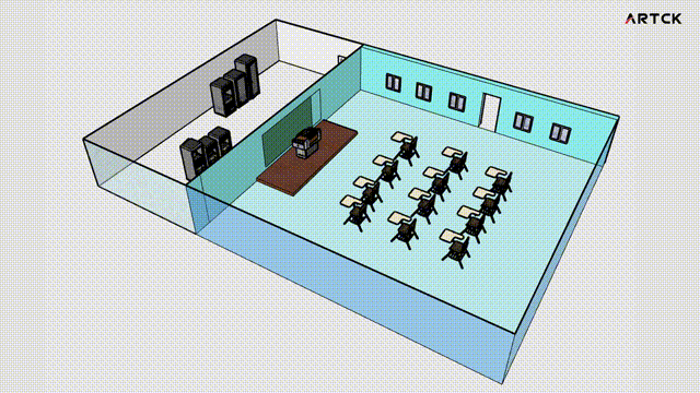 目前高校的智慧型教室,很多都是采用研討型小組式設計,老師和每個小組都需要獨立擴聲。這種場景,以往的吊麥擴聲,沒法實現精準分區拾音,且全范圍拾音擴聲效果較差,滿足不了智慧教室的高品質要求;假如采用有線話筒方案來解決,使用者的活動范圍嚴重受限,長距離布音頻線風險高,線材要求高、通用性差,設備要求也較復雜;又或者采用一般的無線話筒,無論是一師一麥的教學話筒,還是傳統的專業無線話筒,不但存在上面分析的接收機和天線部署的矛盾,多話筒共用時天線密集安裝還會產生信號干擾,嚴重影響信號的穩定性和使用體驗,安裝施工也十分復雜困難。