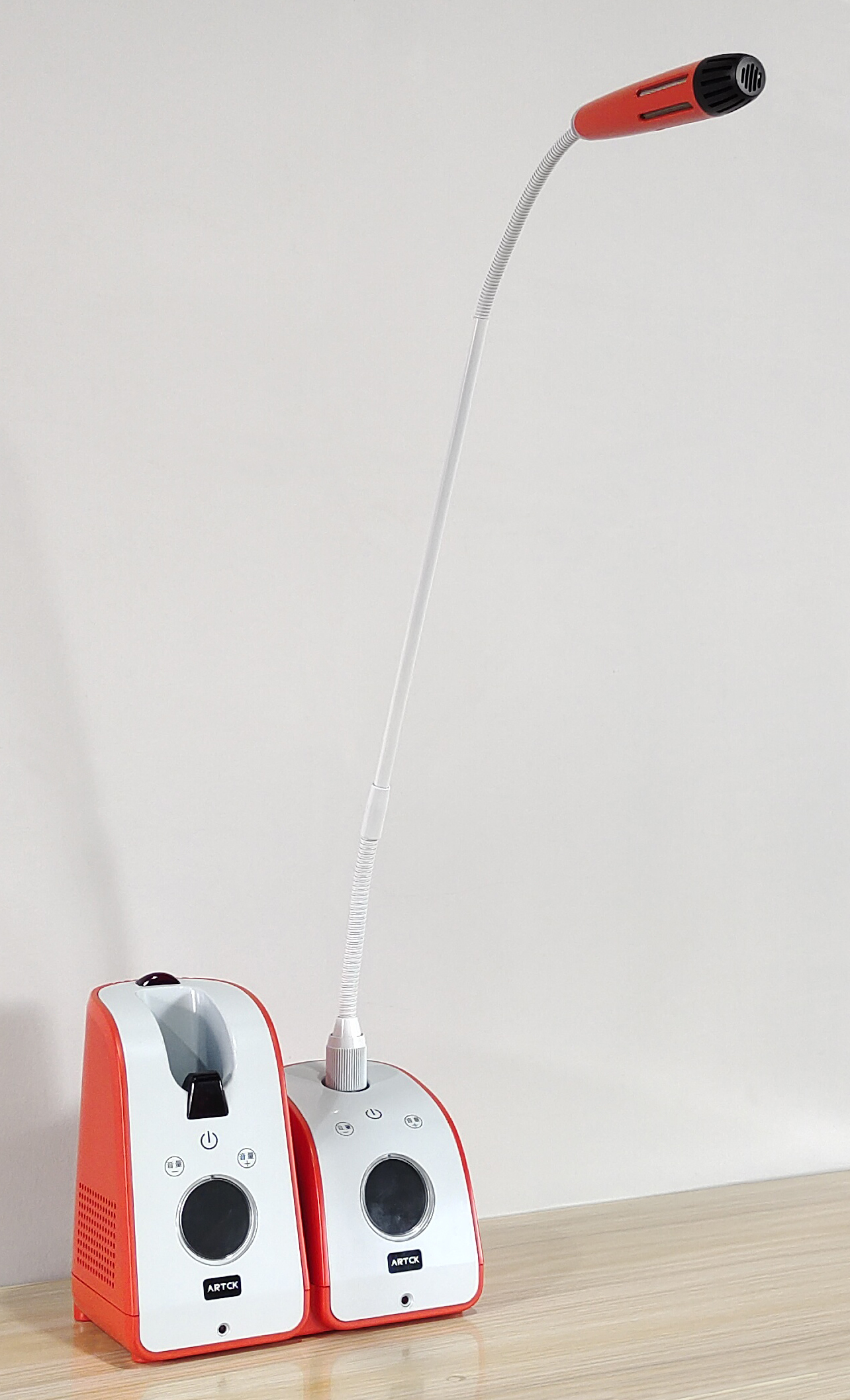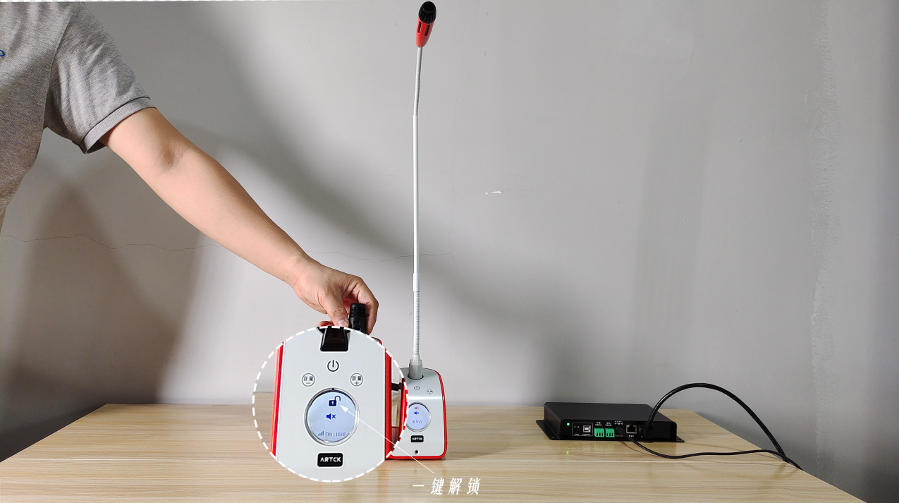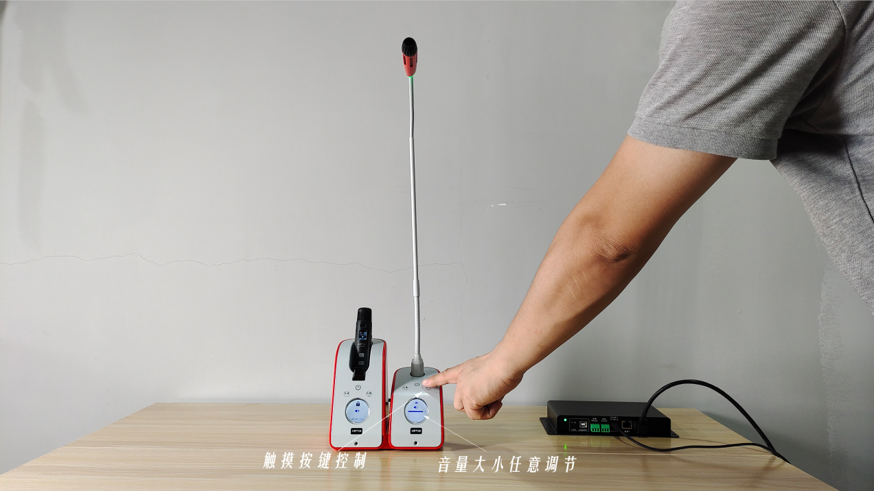 使用者可以通過觸摸式感應按鍵指令或者中控指令輕松完成無線話筒取出/歸還的動作。無線話筒取出之后自動解鎖連接使用,確保無線話筒的使用過程流暢,使用者體驗感極佳。觸摸管家面板上的按鍵可控制話筒音量的大小,靈動悅耳的語音提示也隨之響起,此外還有高清TFT彩屏顯示音量狀態、話筒信道等信息。