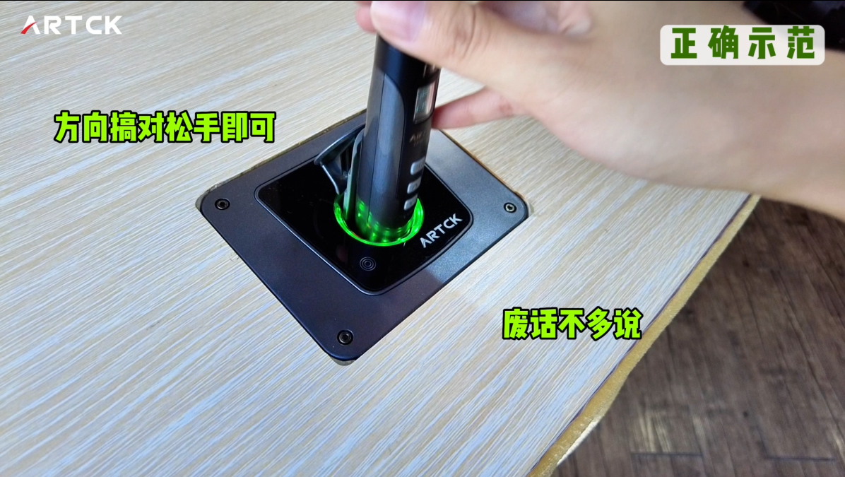 顯示屏朝上,麥頭朝艙外;將無線教學話筒往艙內(nèi)推送直至艙內(nèi)底部,話筒正確放置后艙門自動關(guān)閉;
