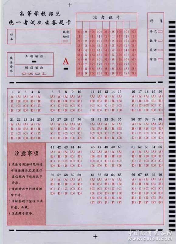 機讀卡操作使用技巧 一、填涂技巧: 1、填涂考生號 考生拿到機讀卡后,認真檢查一下有無破損或污跡,若有則立即要求更換,然后將墊板墊在機讀卡下面,用2B鉛筆認真填寫自己的姓名和阿拉伯數字考號,并將與阿拉伯數字對應的考生號信息點涂黑,涂完要認真檢查。 2、填涂考試科目 不同科目使用樣式相同的機讀卡,為了區分不同科目。機讀卡上設有"考試科目"欄,考生要用鉛筆將相應科目的信息點涂黑。 3、填涂答案 在答選擇題時,要用2B鉛筆在機讀卡上將你選項的答案的信息點涂滿涂黑。 4、答案涂寫技巧 每個信息點只要用2B方形頭鉛筆橫向涂兩筆即可,黑度達到看不清信息點中的字符為宜。 二、應試妙招: 1、使用前把鉛筆的頭在紙上磨成馬蹄形(粗細跟小格差不多),填涂的時候相較于小格就比較合適。 2、可以選擇買專用的機讀卡填涂自動鉛筆,因為這種自動鉛筆的筆尖已經做成了馬蹄形。 3、可以選擇買填涂用的尺子,尺子上有相同大小的小孔。直接在里面填涂。 4、在填涂機讀卡時,不能將其折疊,否則全部作廢。 5、填涂機讀卡時,消除靜電的辦法,可以用手接觸一下墻壁或接地的物體。 |
