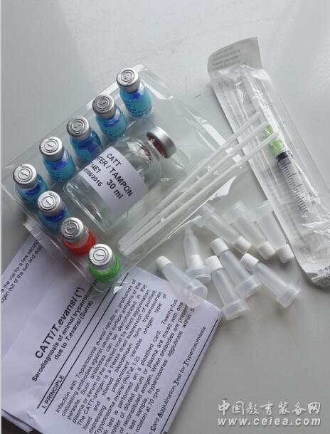 試劑盒含有完成伊氏錐蟲卡片凝集試驗(yàn)檢測(cè)全過程所需全部試劑:抗原、緩沖液、陽性血清和陰性血清; 可對(duì)馬屬動(dòng)物、豬、牛、羊等多種動(dòng)物的血清進(jìn)行檢測(cè) Card Agglutination Test for animal Trypanosomiasis caused by T.evansi This field and laboratory test (CATT/T.evansi) is used for the serodiagnosis of animal African trypanosomiasis (T. evansi). It is a direct card agglutination test for detection of trypanosome specific antibodies in blood, serum or plasma of T.evansi in different animal species. It is currently applied for serodiagnosis of T.evansi in various host species (i.e. camels. buffaloes, equidae, dogs,…) Reagent | Freeze dried suspension of purified, fixed and stained trypanosomes of a cloned predominant Variable Antigen Type (VAT RoTat 1.2) of T.evansi. Test sample | Whole blood (for screening), plasma (on heparine or EDTA) or serum. Shelf life - expiry date | When stored under the prescribed storage conditions, all the reagents will retain their activity until the expiry date mentioned on the “Reagent” boxes and on the packing list (1 year). Storage · Freeze dried reagents (antigen, controls) : in the refrigerator(+2°C to +8°C) or in the freezer (-20°C) · CATT buffer: in the refrigerator (+2°C to +8°C) – do not freeze! · During transport, storage and handling: avoid exposure to heat and direct sunlight. · It is recommended to dispatch the reagents from a central storage centre to the field under refrigerated conditions (cold chain). Packaging Test kit containing all reagents and accessory materials + protocol. · CATT/Tev T250: 250 screening tests What else do you need? · Card Test Rotator References · C. Gutierrez, M.C. Juste, J.A. Corbera, E. Magnus, D. Verloo and J.A. Montoya (2000): Camel trypanosomosis in the Canary Islands: assessment of seroprevalence and infection rates using the card agglutination test (CATT/T.evansi) and parasite detection tests. Vet. Parasitol., 90, 155-159. · D. Verloo, E. Magnus and P. Büscher (2001): General expression of RoTat 1.2 variable antigen type in Trypanosoma evansi isolates from different origin. Vet. Parasitol., 97, 183-189. · W.G. Holland, N.G.Thanh, L.N. My, E. Magnus, D. Verloo, P. Büscher, B. Goddeeris and J. Vercruysse (2002): Evaluation of whole fresh blood and dried blood on filter paper disks in serological tests for Trypanosoma evansi in experimentally infected water buffaloes. Acta Tropica, 81, 159-165.