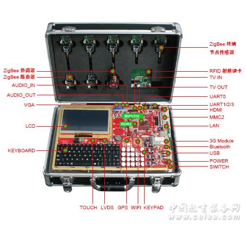 產品詳細介紹 物聯網技術是在傳統互聯網技術基礎上拓展及延伸的,由于其應用領域極其廣泛,幾乎涉及各行各業,因而為了滿足行業對專業人才的需要,越來越多的高校申請了物聯網工程專業,在教學計劃中安排了物聯網技術類課程,海天雄公司為了滿足學校教學需要,結合實際產品開發經驗,研發了海聯·物聯網技術綜合實驗系統。 海聯·物聯網技術綜合實驗系統側重于物聯網感知層、網絡傳輸層、應用層三層技術的理論和實踐教學,該系統中的感知層由各類傳感器、RFID射頻模塊組成,實現了不同物理特性的信息采集,網絡層則由物聯網關鍵技術之一的ZigBee短距離實現數據信息的通信任務,以及WiFi、藍牙BT、3G等技術實現各種不同網絡傳輸的功能;應用層是物聯網三層技術的最上層,則由高級物聯網網關構成,實現數據信息的處理以及上層應用的開發。 CES-IOT210 物聯網系統倡導 “產品化學習” 理念,該系統的設計是結合成熟物聯網產品方案,以實際的產品技術導入該實驗系統,學生透過對點、塊、全局系統的學習,全面掌握物聯網前沿技術,從而達到學習知識點與產品知識點的完美結合。 CES-IOT210 實驗系統提供多達數十種課程實驗,課程實驗提供開放的軟件及硬件資源,著重培養學生的實際動手能力,可實現教學、科研等物聯網相關課題。