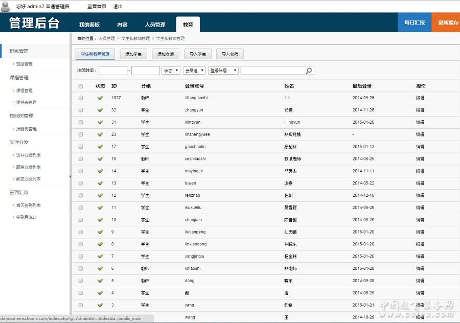 系統特點 1、文件共享,可以用發資料板塊進行文件上傳共享 2、視頻錄直播,可在線錄制視頻,還可進行直播,實現時實互動教學模式 3、班級會模塊使師生可以自由交流,拉近師生距離,不因下課即結束溝通的永久學習交流場所。 4、完全跨平臺運行,服務器客戶端都支持Windows,Linux,Unix,Soloris,MacOS 等操作系統。 5、基于Web方式使用,不用安裝客戶端,通過IE等瀏覽器即可接入使用。