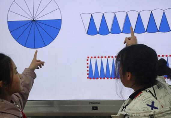 李老師還強調:“海信交互式一體機可以在原有的課件上進行涂抹和修改,也可以對書寫文本進行拖曳、放大、旋轉和遮罩等,當原有“黑板”寫滿后,只需要重新創建一個即可,相較于傳統的黑板,極為便捷,同時能夠實時記錄課堂教學過程,即刻調用所需數據資料,極大的滿足了我們教師對互動教學的迫切需求。例如,我在教授《三角形內角和》一課時,通過海信交互式一體機的畫圖工具輕松繪制出三角形,運用照相功能對三角形的三個內角分別照相獲取和三角形三個內角度數相同的三個角,再旋轉和移動這三個角,使其同頂點重合,這樣不僅操作方便,同時能夠避免傳統折紙法出現的教學誤差。”