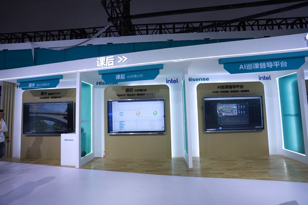 展會現場,海信智慧教育新品全陣容亮相,圍繞課前、課中、課后、管理等教學流程,深度展示了AI等技術賦能下的全新教學圖景。課前,海信基于AI數字化大模型,可幫助老師一鍵生成教學課件,在完成高質量備課的同時,更為老師節省精力與時間;課中,海信在現場展出了AI紙筆互動、互動研討、激光護眼顯示、AI錄播、虛擬仿真教學等多個教學場景,針對教學細分痛點打造了差異化解決方案,幫助老師提高教學效率,幫助學生深入課堂學習。課后,海信可為學生提供個性化學習方案,基于學情大數據分析精準生成靶向作業,幫助學生更有針對性地進行學習,提高學習效率。此外,海信還展出AI巡課督導等校園管理平臺,為班級督導、聽課、查課提供便利,該平臺還具備強大的學生行為分析能力,幫助學校進行高效管理。