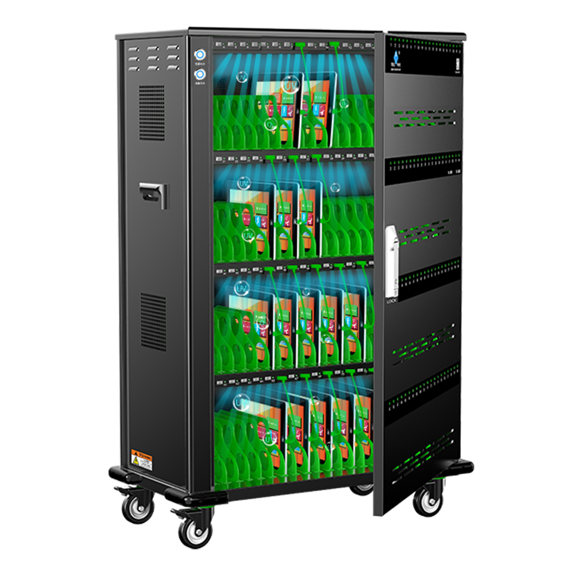 產品詳細介紹品牌:際慶科技 型號: USB64 USB64招投(應標)參數: 功能參數: 1、★USB 5V2.4A直流充電口64個并配對應數量綠色數據線(智能IC芯片識別所需分流安全穩定高效),雙120mm風扇智能溫控28℃±5啟停系統(Ai) 2、★圓形金屬電源開關,每口數位標識并具備智能LED轉燈功能(紅燈:充電狀態中,綠燈:充滿/未連接),配64條綠色數據線; 3、★主動式PEC節能開關電源,柜內置十重安全保護①雷擊保護②浪涌保護③過載保護④漏電保護⑤隔離保護⑥過流保護⑦過壓保護⑧短路保護⑨過充保護⑩灌流保護; 4、★自動消毒(紫外線兼臭氧O3 啟動25min后自動關)并配圓形金屬手動開關(選配項); 5、★定時充電具有電子顯示屏/多組設置/精準定時/倒計時設置(根據使用習慣隨意設定啟停時間段)(選配項) 6、★提供具備軟件支持中英文切換,能夠同時自動識別設備鏈接數并數列排序,一鍵安裝和卸載應用APP、文件分發、文件刪除、一鍵關機等批量化智能管控,集中監測設備實時充電電量、充電狀態、定位尋找、應用程序以及內存儲容量;(選配項) 結構參數: 1、★四層式全黑每層16工位綠色ABS隔位設計,帶鎖前單開門,左側艙為電源管控封閉區;外形尺寸≤596*1061*372mm(mm含腳輪防撞),工位容積320*200*25(mm) 2、★雙側ABS工程提手,頂邊圓弧(≥R10)設計,四角加裝凸高22mm軟塑防撞角,4個2.5寸剎車腳輪(高度105mm); 3、★門板有對應內USB口數位標識的數位標識,前門板與側板對流孔通風排熱設計; 產品資質: ①★整機CCC認證(原廠蓋章證明) ②★具有商標(國際分類20和9)證書(原廠蓋章證明) ③★具有軟件著作權(原廠蓋章證明) ④★具有ISO9001:2015質量管理體系認證(原廠蓋章證明) ⑤★具有產品專利證書(原廠蓋章證明) ⑥★具有AAA企業信用等級證書(原廠蓋章證明)
