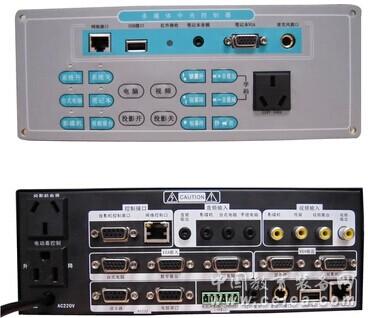技術(shù)參數(shù): CM-2300集成了一系列高性能的控制模塊,無需外加專業(yè)設(shè)備, 即可滿足大部分控制系統(tǒng)的控制要求; 同時(shí)又可進(jìn)行一定程度的擴(kuò)展,即可外接一系列控制設(shè)備, 以滿足更高要求的控制要求。 1、 集成3X1音視頻切換矩陣,視頻帶寬達(dá)100MHz 。 2、 集成3選1分2 VGA/XGA信號(hào)切換矩陣,帶長線驅(qū)動(dòng),可以對臺(tái)式電腦、 手提電腦等VGA/XGA信號(hào)源進(jìn)行實(shí)時(shí)切換。 3、 內(nèi)嵌式紅外學(xué)習(xí)器和2路紅外線輸出通道 采用了優(yōu)化的紅外學(xué)習(xí)算法和高性能處理器, 能學(xué)習(xí)各種設(shè)備的紅外控制碼。 內(nèi)置1路可編程紅外發(fā)射端口, 全面解決了紅外信號(hào)控制中的各種的問題。 4、 集成2路話筒輸入和電子音量調(diào)節(jié)模塊, 可對輸出環(huán)境的音頻信號(hào)進(jìn)行音量多級連續(xù)調(diào)節(jié)。 5、 內(nèi)置強(qiáng)電控制模塊 可分別控制投影機(jī)電源和電動(dòng)屏幕升、降電源。 投影機(jī)電源帶延時(shí)關(guān)機(jī)功能,可有效保護(hù)投影機(jī)。 6、 集成3路獨(dú)立可編程RS-232接口, 可以RS-232碼控制投影機(jī)及其它具通訊接口之裝置 7、內(nèi)置TCP/IP網(wǎng)絡(luò)控制模塊,直接連到校園網(wǎng); 投影機(jī)RS-232控制代碼可以批量錄入,操作方便。 8、帶有遠(yuǎn)程電腦自動(dòng)開關(guān)機(jī)控制接口, 老師上課不再需要在講臺(tái)里找電腦開關(guān), 國內(nèi)首家推出"真正地全自動(dòng)授課模式"。 9、內(nèi)置2路I/O接口,可連接門磁開關(guān)、防盜設(shè)備; 內(nèi)置1路+DC12V電源,可連接電控鎖 10、 批量生產(chǎn),有較高的穩(wěn)定性和性價(jià)比。 |