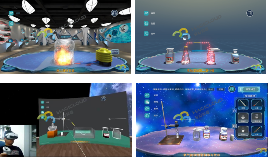 覆蓋初中化學實驗的重點及難點實驗。借助AR技術進行虛實結合,將難以肉眼觀察的分子、原子、元素等通過3D技術展示,模擬各項化學實驗反應,讓學生身臨其境的觸摸難實現、難理解、難觀察的知識,同時避免高危險、高污染的化學物品對學生的危害,降低實驗器材成本。