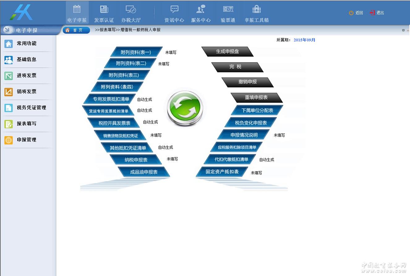 系統可以申報增值稅、企業所得稅和消費稅三大稅種。