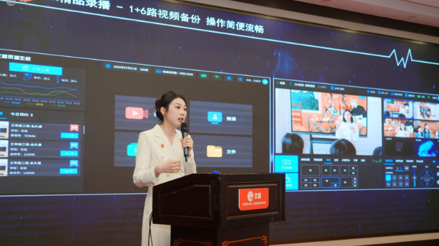 隨后,培訓部金牌講師楊倩對本次推出的新品進行了全方位、多角度的介紹,讓與會者對文香科技的創(chuàng)新實力有了更加深入的了解。她提到,這些新品在性能、穩(wěn)定性、安全性等方面都達到了行業(yè)領(lǐng)先水平。同時,新品還具備高度可擴展性和靈活性,能夠根據(jù)不同的應(yīng)用場景進行優(yōu)化,滿足用戶的多樣化需求。在應(yīng)用場景方面,楊倩也進行了生動的描述。她結(jié)合教育行業(yè)的實際情況,詳細闡述了新品在課堂教學、體育活動、校園慶典等方面的應(yīng)用優(yōu)勢。