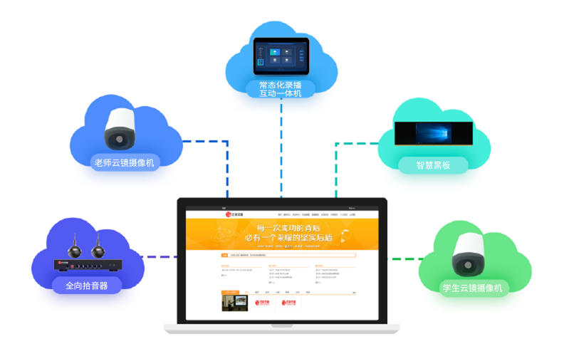 本方案由常態(tài)化錄播互動一體機、電子云鏡攝像機、智慧黑板、全向拾音器、資源管理平臺等產品組成。