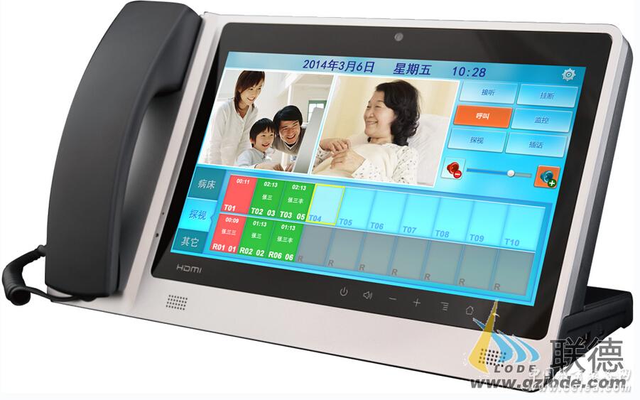 Ø 底座式,放置在護(hù)士站的桌面上即可; Ø 可設(shè)定為護(hù)士站主機(jī)和護(hù)士站副機(jī);一套系統(tǒng)內(nèi)最多可設(shè)定1臺(tái)護(hù)士主機(jī)和12臺(tái)護(hù)士站副機(jī)。 Ø 采用10.2寸數(shù)字真彩屏,linux操作系統(tǒng),觸摸式操作,界面高檔美觀。 Ø 基于局域網(wǎng),以TCP/IP協(xié)議傳輸視頻、音頻和控制信號(hào),實(shí)現(xiàn)雙向可視對(duì)講。 Ø 須配合探訪(fǎng)分機(jī)和ICU分機(jī)使用。 Ø 高清可視對(duì)講,配送手持呼叫器,可手柄或免提通話(huà),內(nèi)置高靈敏度麥克風(fēng)、高保真立體聲喇叭,并具有16K以上的聲音采樣率,使聲音更加逼真、宏亮。 Ø 最多可接30臺(tái)探訪(fǎng)分機(jī)和1000臺(tái)ICU分機(jī)。 Ø 有呼叫轉(zhuǎn)接功能,可為探訪(fǎng)分機(jī)轉(zhuǎn)接相應(yīng)的ICU分機(jī)進(jìn)行可視對(duì)講。 Ø 有監(jiān)聽(tīng)監(jiān)視功能,當(dāng)病人家屬與病人之間進(jìn)行通話(huà)時(shí),可對(duì)其監(jiān)聽(tīng)監(jiān)視。 Ø 可設(shè)定分機(jī)的通話(huà)時(shí)間(10分鐘、30分鐘、60分鐘可選)。 Ø 有通話(huà)計(jì)時(shí)功能:可顯示探訪(fǎng)分機(jī)與ICU分機(jī)的通話(huà)時(shí)間,以便護(hù)士查看。 Ø 有強(qiáng)行切斷通話(huà)功能,根據(jù)病人的情況控制通話(huà)時(shí)間。 Ø 可呼叫病床及對(duì)講。 Ø 可外接耳麥。 Ø 采用低照度CMOS彩色攝像頭。 Ø 安裝簡(jiǎn)捷,用RJ45標(biāo)準(zhǔn)網(wǎng)線(xiàn),插入網(wǎng)絡(luò)交換機(jī)任一端口即可工作。