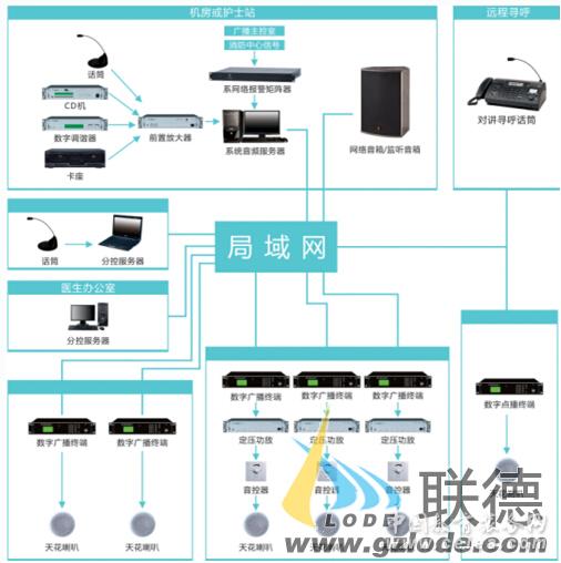 廣州聯德智能系統有限公司主營承接醫院的手術室、ICU、EICU、NICU、其他功能科室等的弱電智能化系統,其中包括手術示教系統,數字化手術室,手術室集中控制系統,ICU病房護理呼叫系統,重癥監護病房探視系統,數字監控系統,背景音樂系統,可視門禁系統,網絡及電話綜合布線系統,信息發布系統,