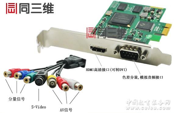 產品詳細介紹 真正的高清HDMI采集卡,根據行業用戶的需求,同三維T230E 高清DVI/HDMI視頻采集卡是北京同舟視達科技有限公司針對專業高清用戶推出的又一款PCI-E接口的廣播級HDMI/DVI高清音視頻采集卡,通過HDMI音視頻接口傳輸,可以得到無損的全分辨率高清無壓縮視頻采集。該款音視頻采集卡集合了眾多優點于一身,單卡支持1080P:一路高清(DVI//HDMI/) 或者一路視頻(分量/CVBS/S端子) + 一路音頻。并且附帶視頻錄播軟件和視頻直播軟件,并提供完整二次開發包SDK。