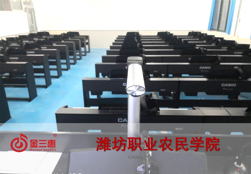 濰坊職業農民學院的電鋼琴教室正式開始使用,本校數字化音樂教室由北京金三惠科技有限公司負責提供、安裝、培訓。