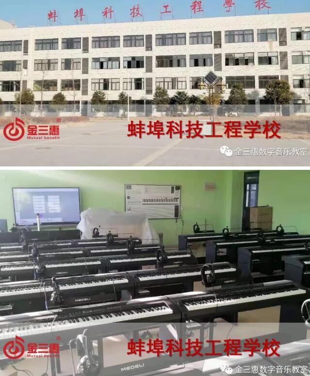 安徽省蚌埠科技工程學校的電鋼琴教室正式開始使用,本校數字化音樂教室由北京金三惠科技有限公司負責提供、安裝、培訓。