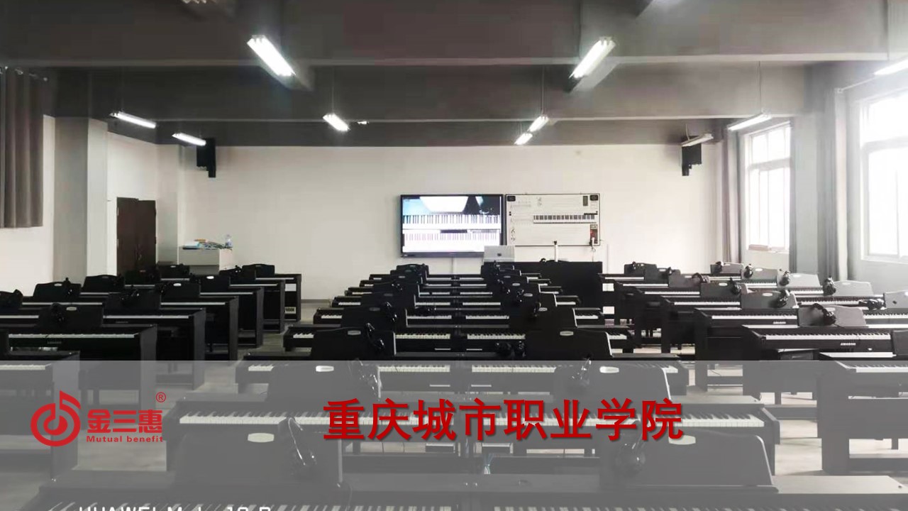重慶城市職業學院的電鋼琴教室正式開始使用,本校數字化音樂教室由北京金三惠科技有限公司負責提供、安裝、培訓。