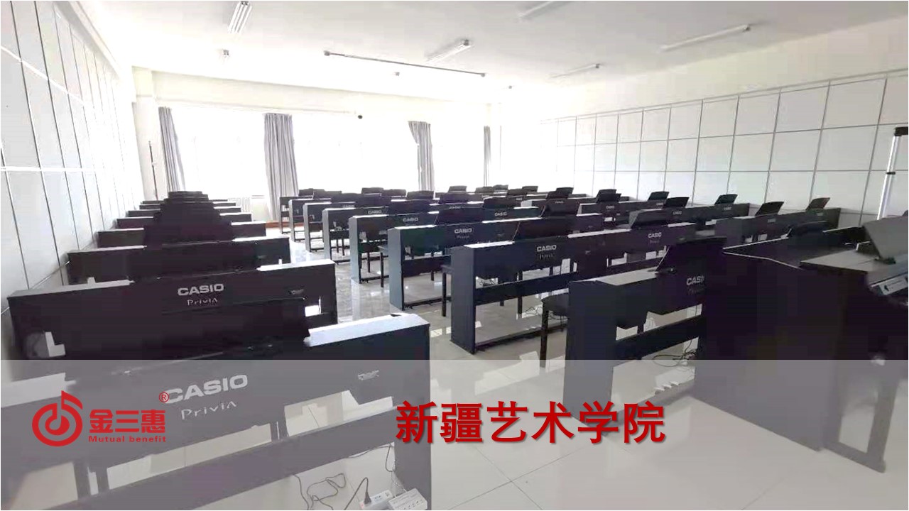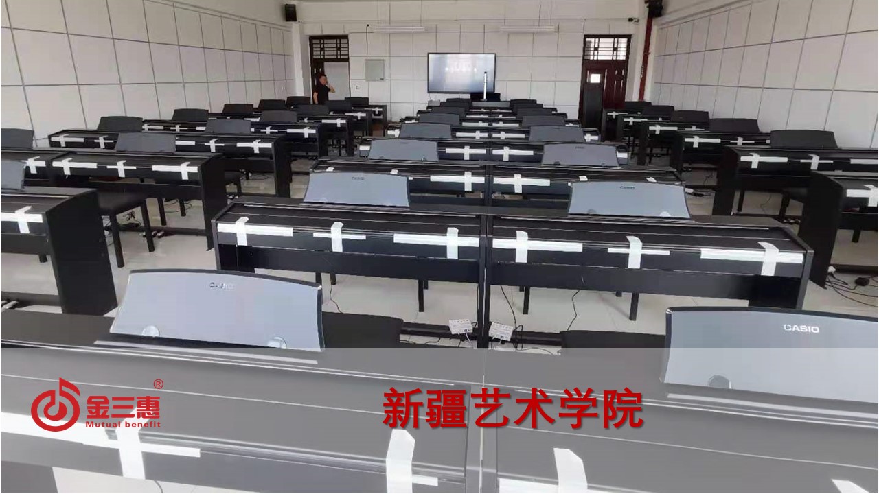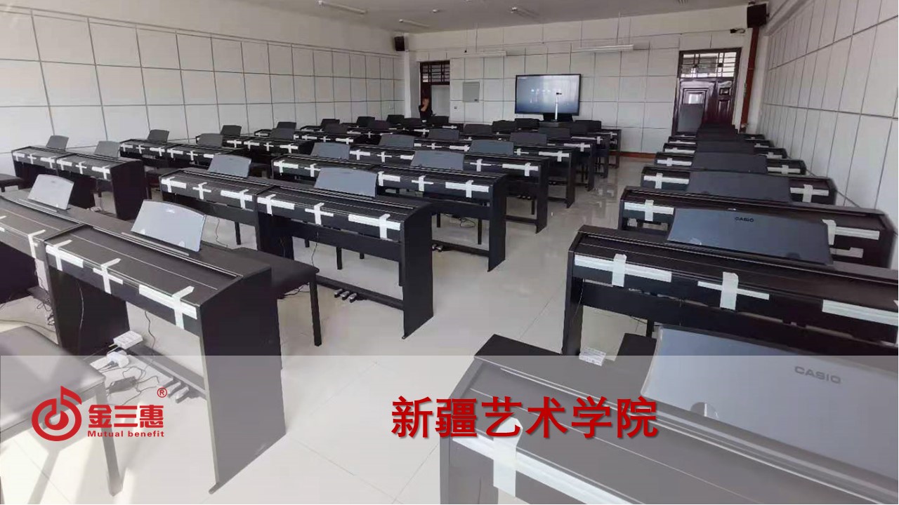 新疆藝術學院的數字音樂電鋼琴教室正式開始使用,本校電鋼琴教室由北京金三惠科技有限公司負責提供、安裝、培訓。
