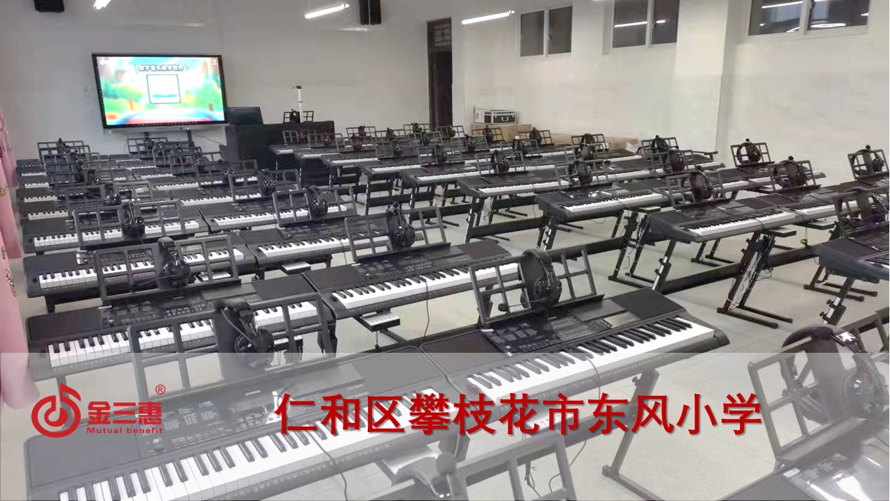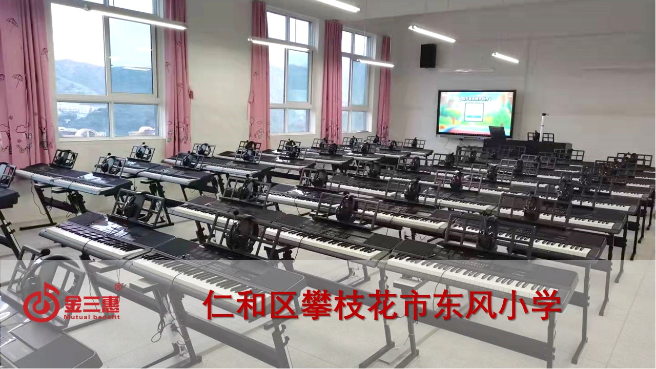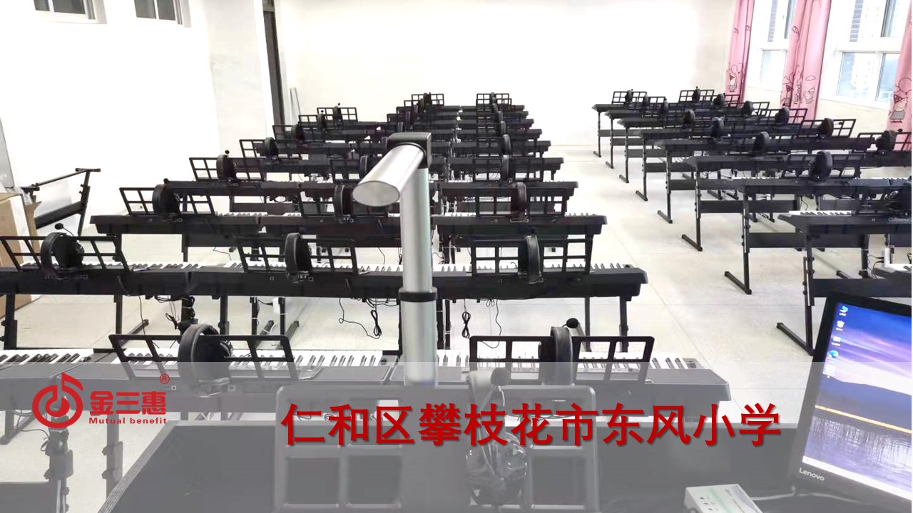 仁和區(qū)攀枝花市東風(fēng)小學(xué)的數(shù)字音樂電鋼琴教室開始使用,本校電鋼琴教室由北京金三惠科技有限公司負(fù)責(zé)提供、安裝、培訓(xùn)。