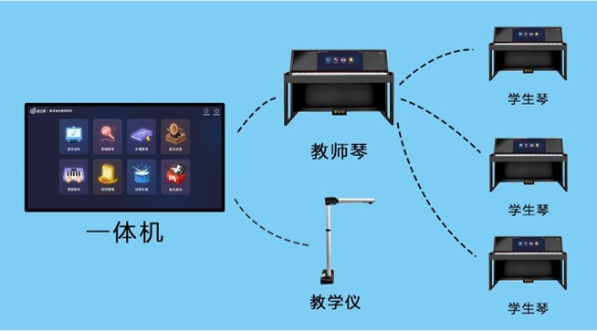 金三惠依據客戶需求,提供了數字化音樂創客教學整體方案,配備12+1的音樂創客教學軟件、智慧鋼琴1018S、電教板等整套設施。