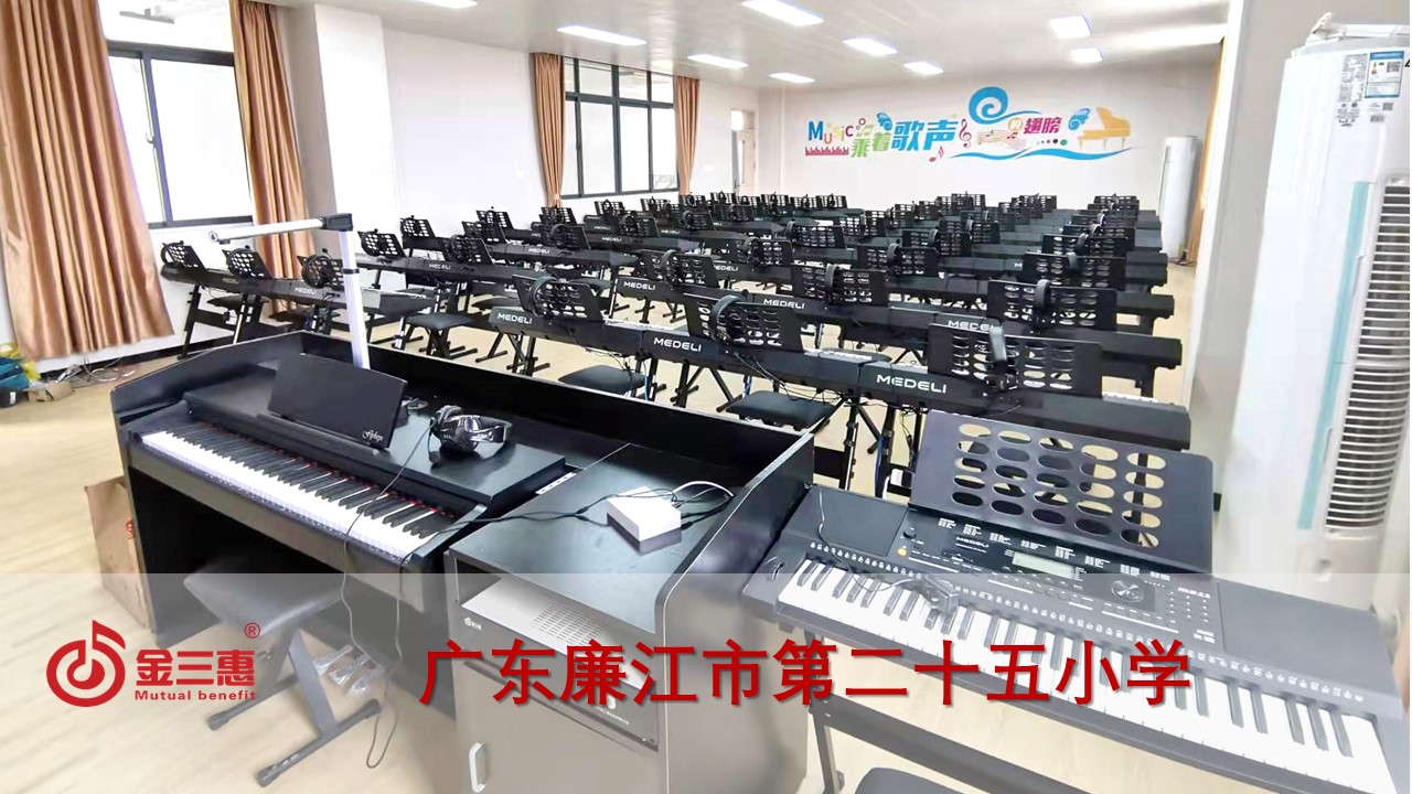 廣東廉江市第二十五小學的數字音樂電鋼琴教室開始使用,由北京金三惠科技有限公司負責提供、安裝、培訓。