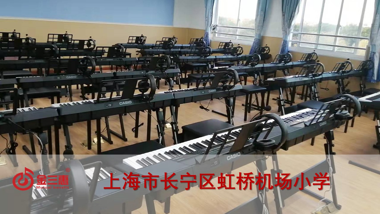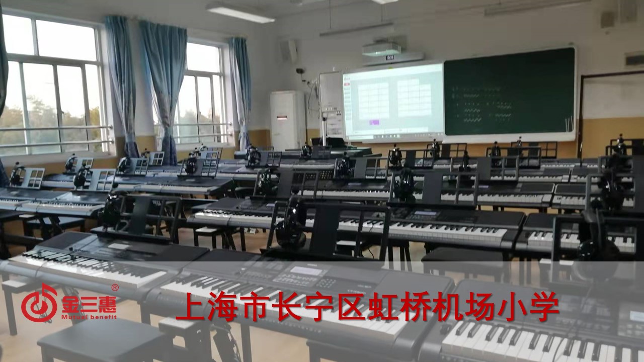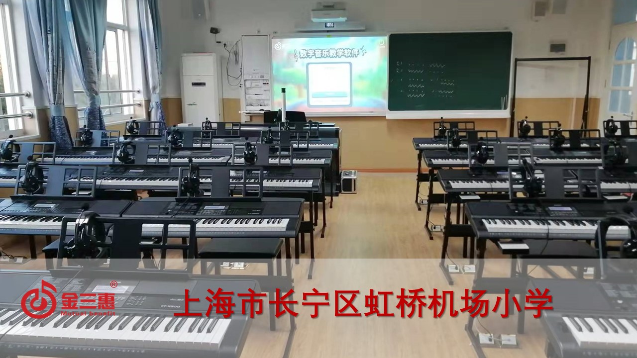 上海市長寧區虹橋機場小學的數字音樂電鋼琴教室開始使用,由北京金三惠科技有限公司負責提供、安裝、培訓。