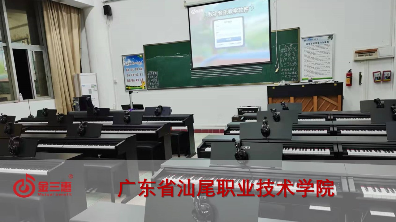 廣東省汕尾職業技術學院的數字音樂電鋼琴教室開始使用,由北京金三惠科技有限公司負責提供、安裝、培訓。