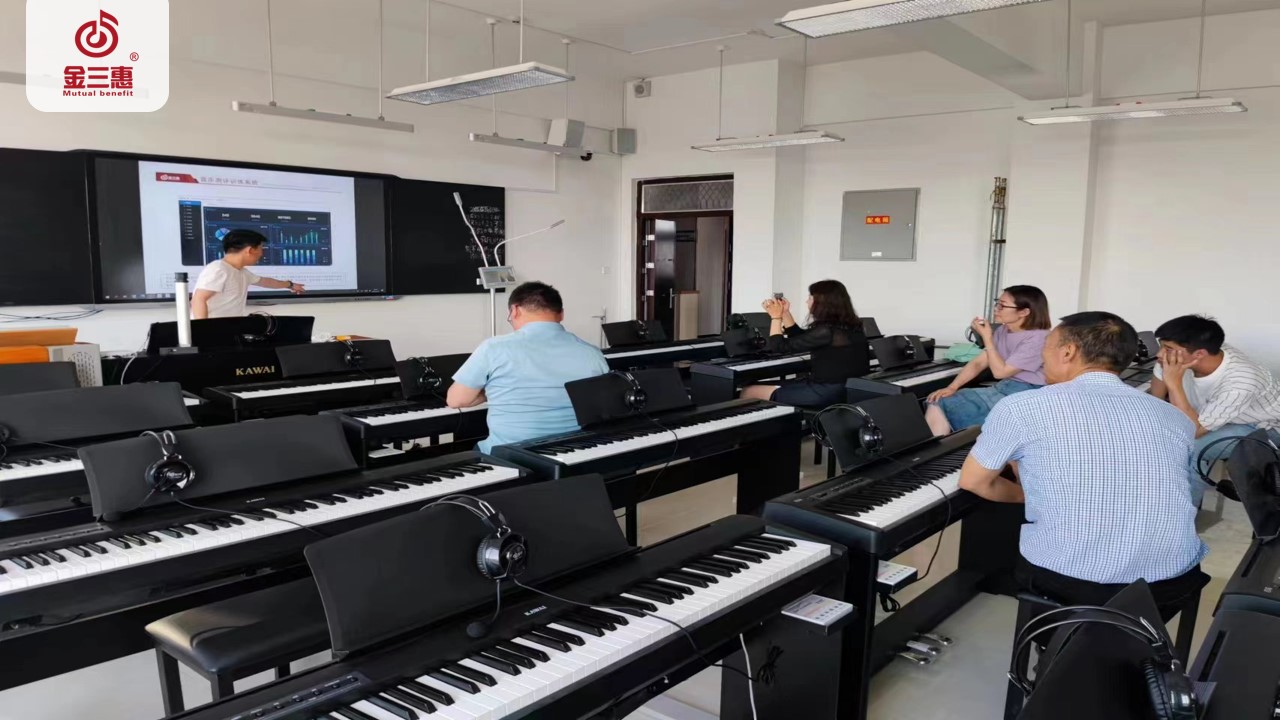 金三惠為新疆第五師雙河職業技術學校策劃了專業的智能音樂化音樂教室,教室配備了音樂教室控制系統和智能電鋼琴。同時,也對教師培訓通過該系統的操作,得到了教師們的高度贊賞,真正實現了數字化音樂教室。