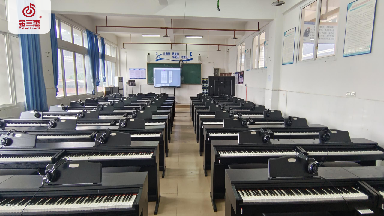 北京金三惠科技有限公司為重慶市萬州區(qū)云陽縣云陽職教中心學(xué)生提供了54+1的電鋼琴教室,配備了金三惠電鋼琴教學(xué)系統(tǒng)、電鋼琴、數(shù)字音樂教學(xué)儀等教學(xué)教具。