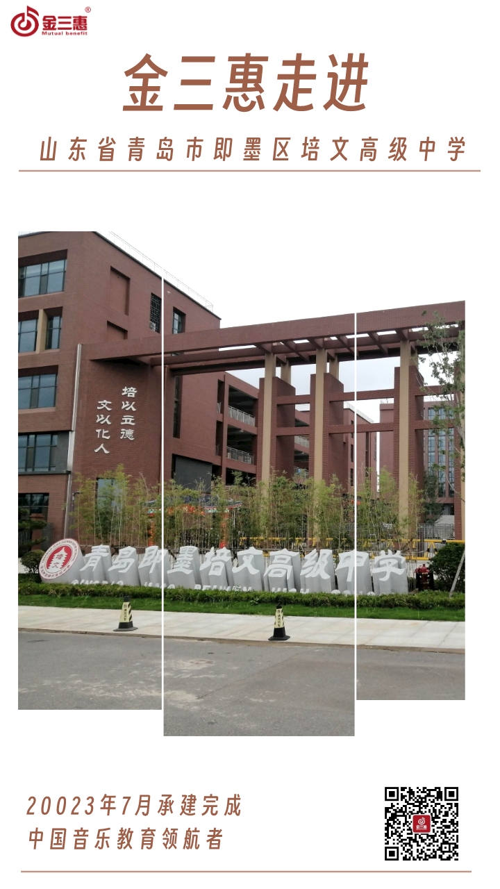 2023年7月,金三惠數(shù)字音樂教室走進山東省青島市即墨區(qū)培文高級中學,為學生提供了24+1的電鋼琴教室,配備了金三惠電鋼琴教學系統(tǒng)、電鋼琴、數(shù)字音樂教學儀等教學教具等。