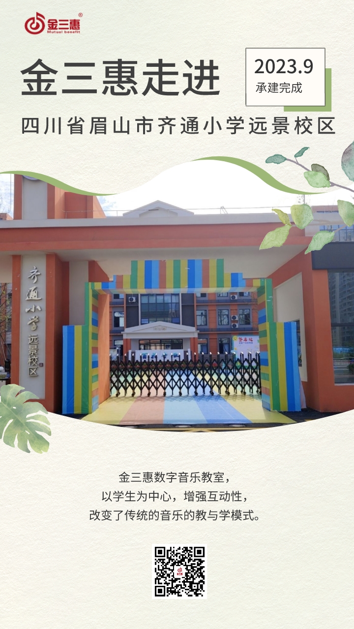 2023年9月,金三惠數(shù)字音樂教室走進四川省眉山市齊通小學遠景校區(qū),為學生提供了29+1、25+1的電鋼琴教室兩間,配備了金三惠電鋼琴教學系統(tǒng)、電鋼琴、數(shù)字音樂教學儀等教學教具等。
