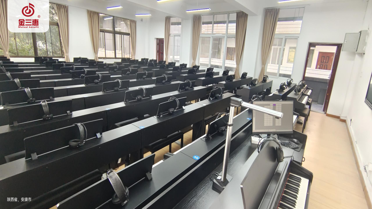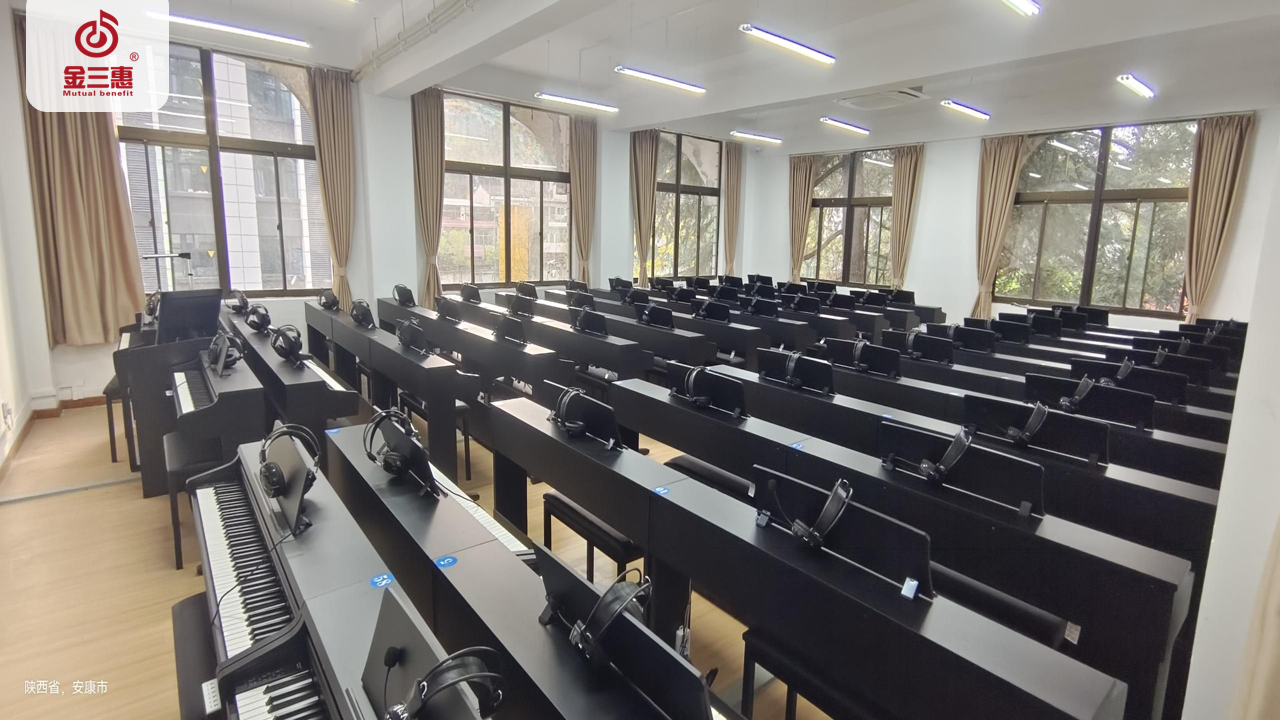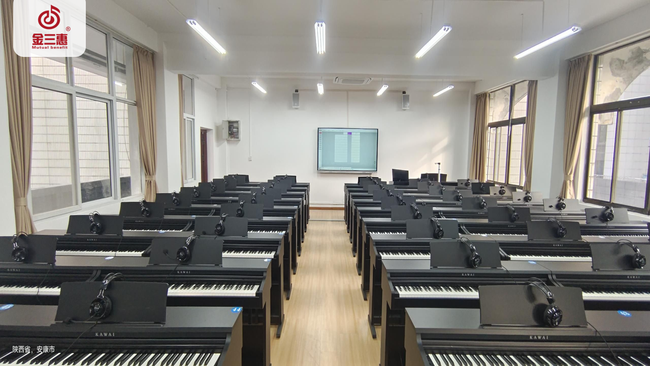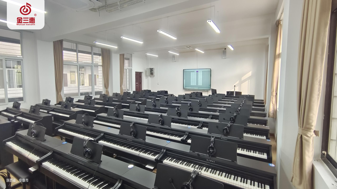 2023年11月,金三惠數字音樂教室走進陜西省安康職業技術學院,為學校提供了兩套58+1和一套62+1的電鋼琴教室,配備了金三惠電鋼琴教學系統、電鋼琴、數字音樂教學儀等教學教具等。電鋼琴室-金三惠 (jinsanhui.com)