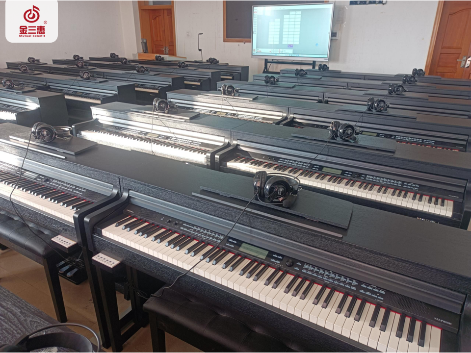2024年5月,金三惠數字音樂教室云南省保山學院,為學校提供了44+1的電鋼琴教室,配備了金三惠電鋼琴教學系統、電鋼琴、數字音樂教學儀等教學教具等。