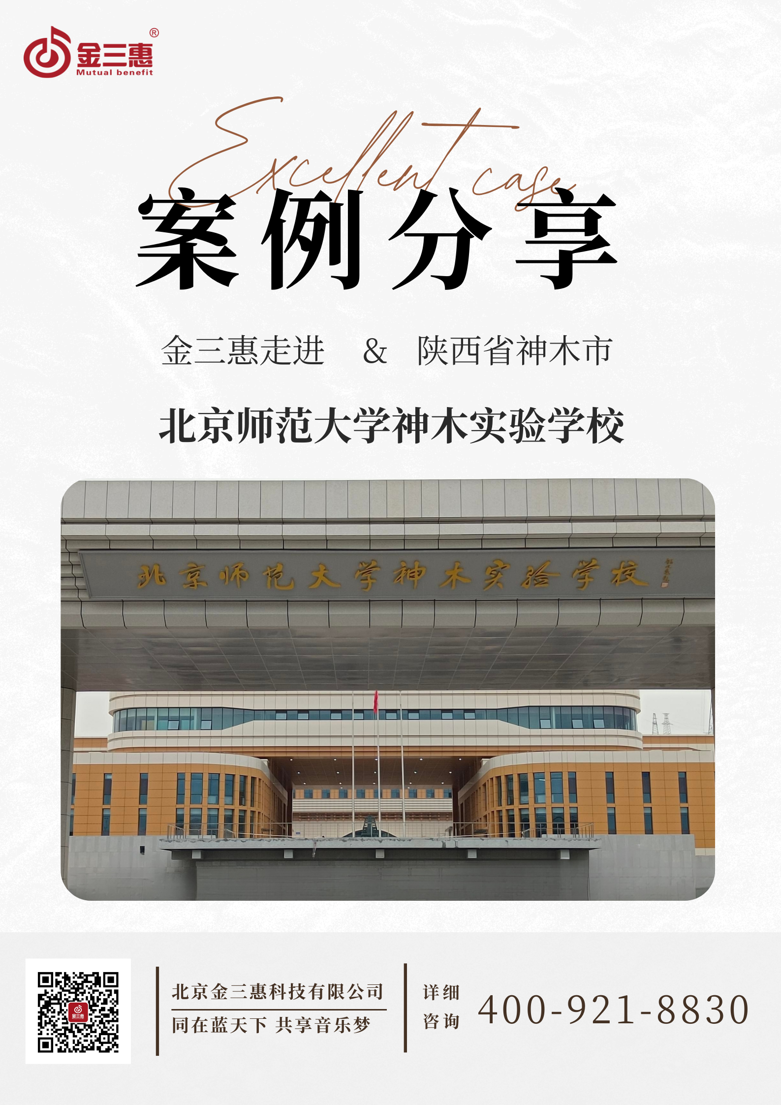 2025年8月,金三惠音樂教室走進陜西省神木市北京師范大學神木實驗學校,為學校提供了24+1的智慧音樂素養教室,配備了金三惠數字音樂教學系統、電鋼琴、數字音樂教學儀等。