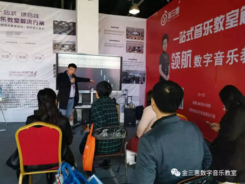 展會上金三惠產(chǎn)品受到各位領(lǐng)導(dǎo)及校長的關(guān)注,市教育局局長楊華云在金三惠展廳表示“希望金三惠的產(chǎn)品裝到每個農(nóng)村學(xué)校,讓我們沒有音樂老師的學(xué)校能上專業(yè)的音樂課“,這是對金三惠最大的贊揚和肯定;展會上大家聽說有音樂教學(xué)的展示,大家口口相傳紛紛前來觀摩學(xué)習(xí),金三惠得到各位校長和音樂老師的認同和喜歡,展位現(xiàn)場十分火爆!