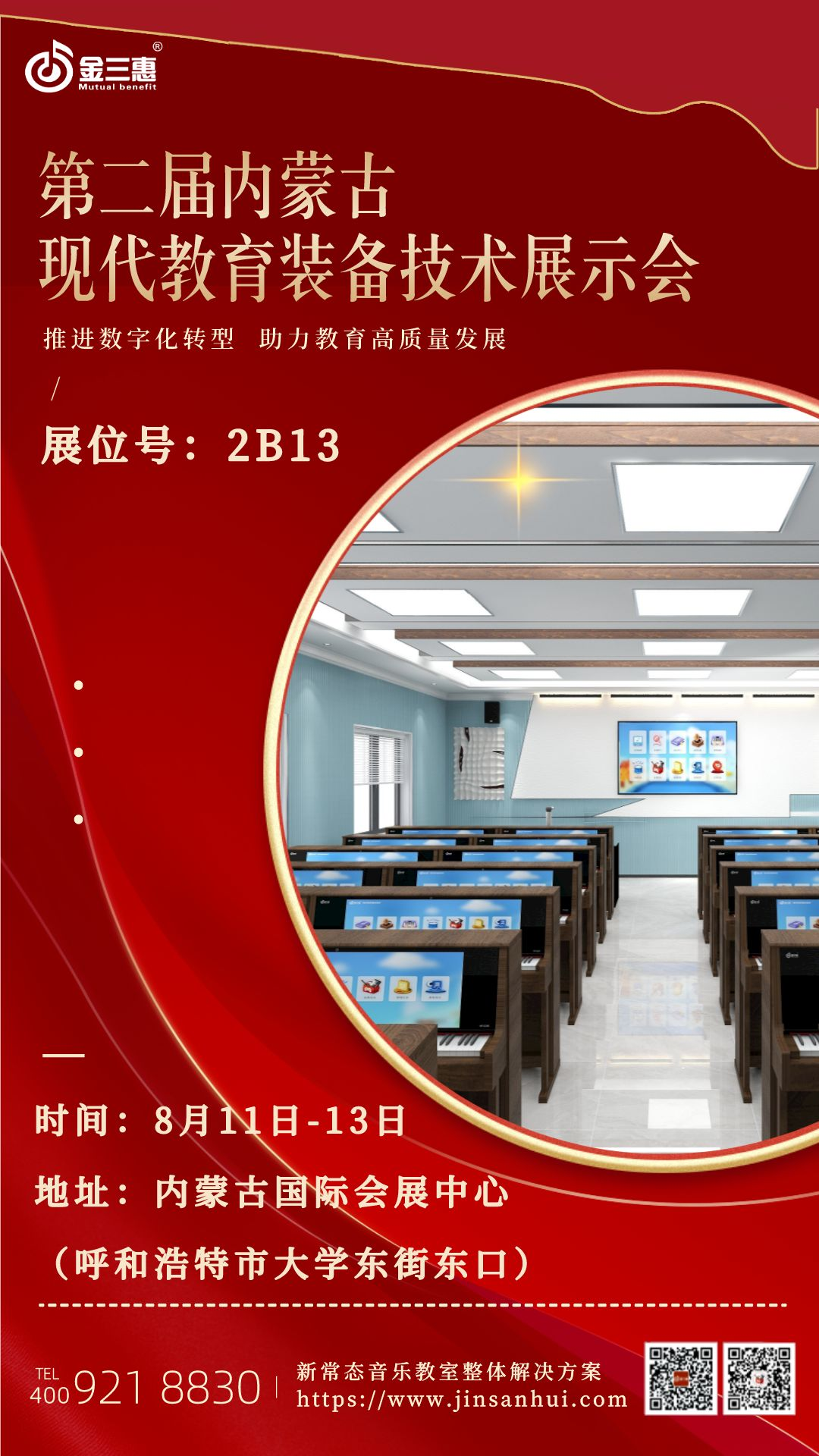 展會時間為8月11日-13日,地點位于內蒙古國際會展中心;我們將展示金三惠數字音樂教室整體解決方案、數字音樂教學以及在數字教育領域的創新成果和應用案例。