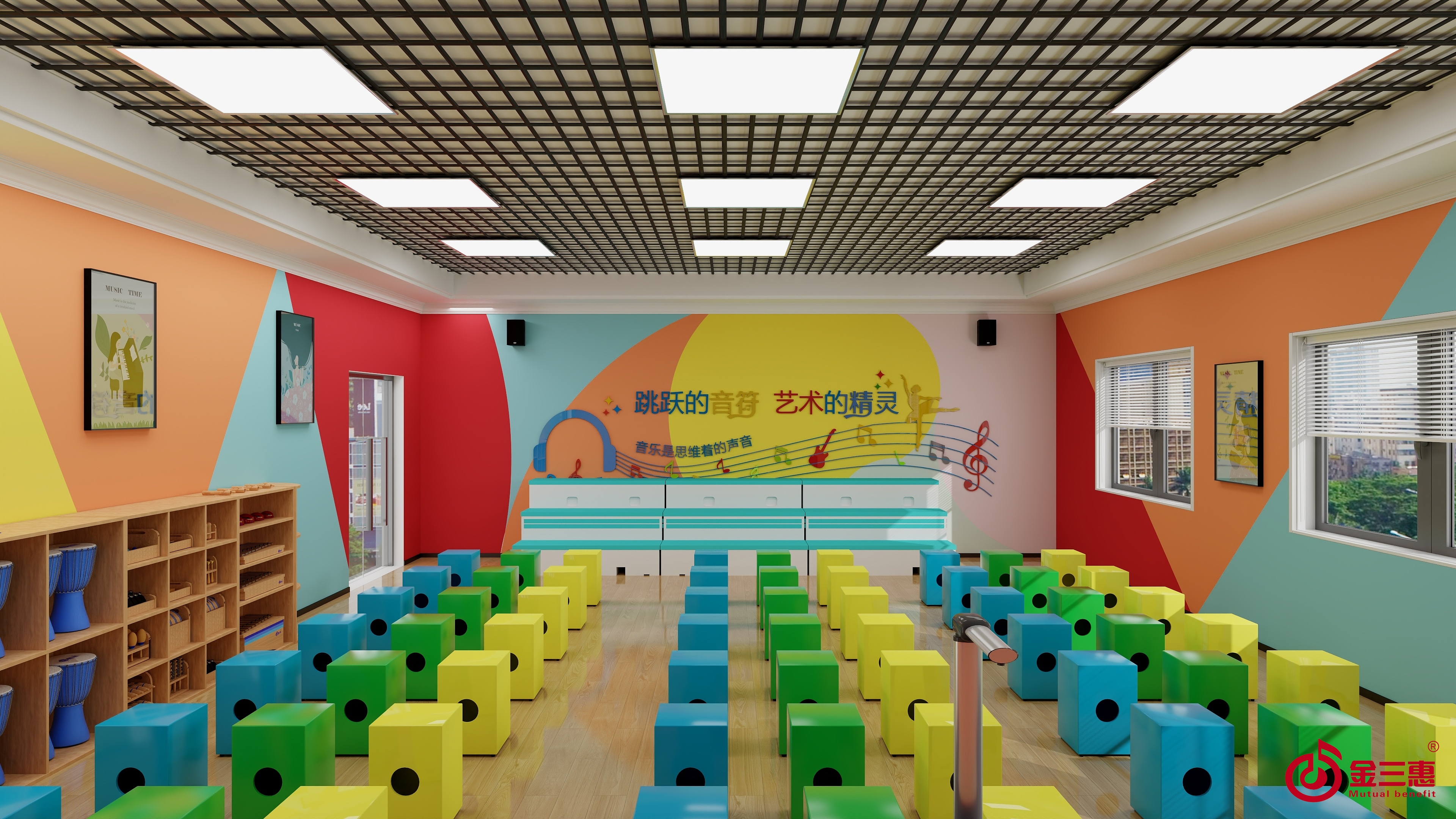 可應用于聲樂教學、樂器教學、音樂興趣小組的開展,具備了暢游室、合唱室、打擊樂器室、音樂教室等功能,幫助新疆地區教師多元化教學;