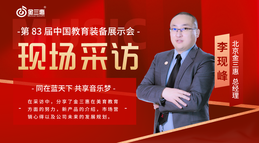 北京金三惠科技有限公司總經(jīng)理李現(xiàn)峰受邀,參加了第83屆中國教育裝備展示會現(xiàn)場采訪,在采訪中,分享了金三惠在美育教育方面的努力,新產(chǎn)品的介紹,市場營銷心得以及公司未來的發(fā)展規(guī)劃。
