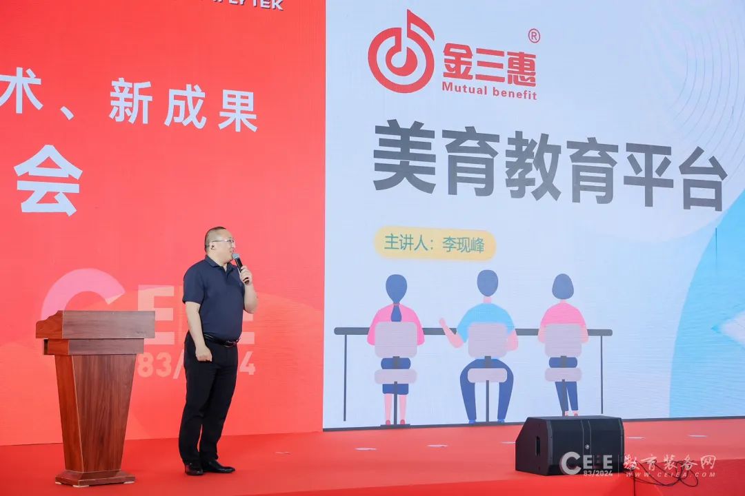 總經理李現峰在第83屆中國教育裝備展示會——“新產品、新技術、新成果”發布會上,進行“美育教育平臺解決方案”的專題演講。
